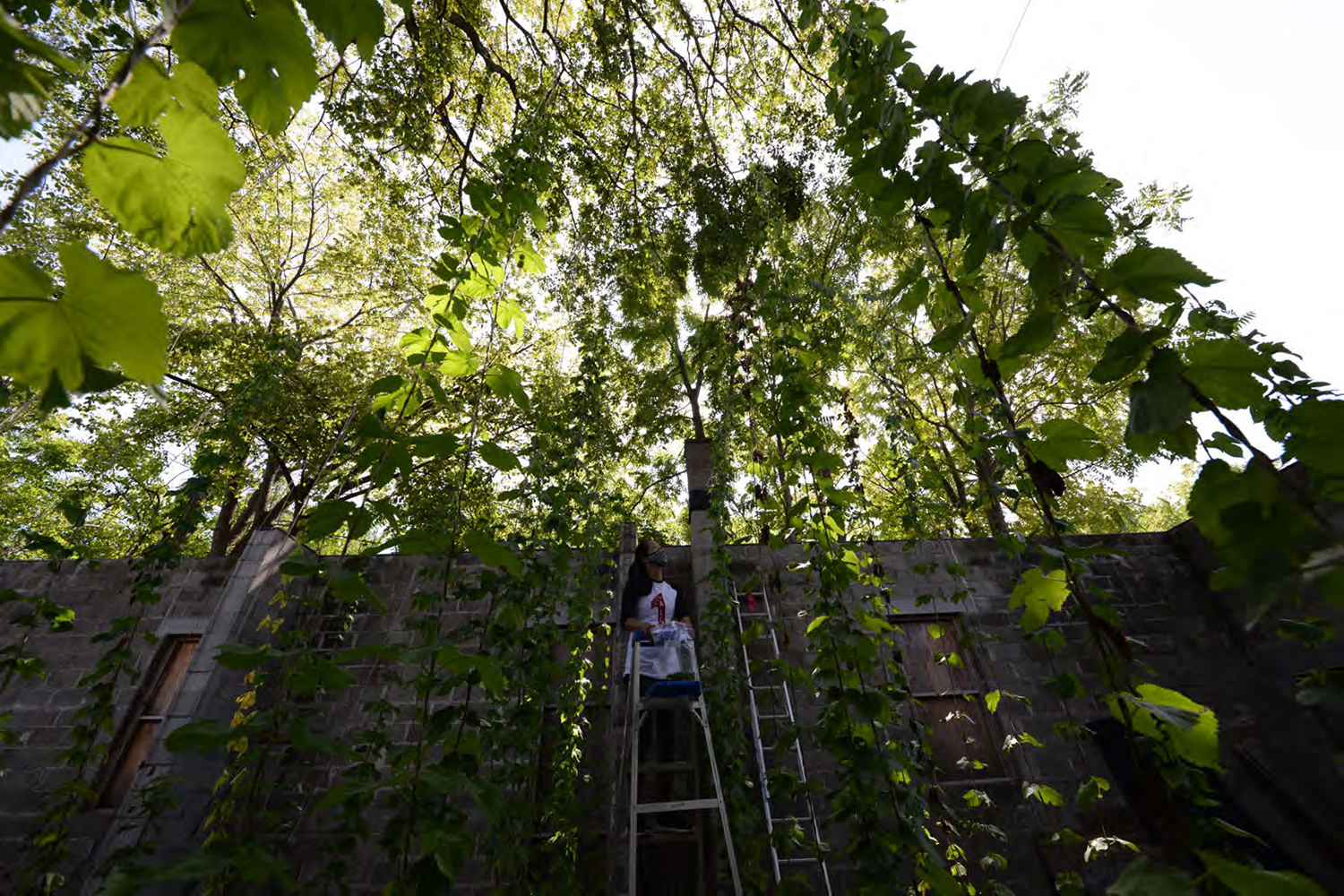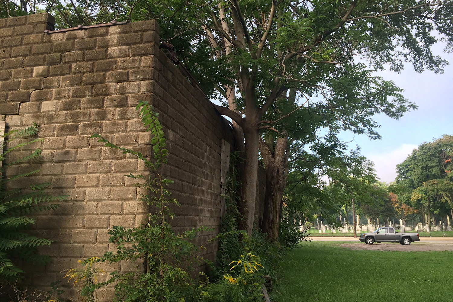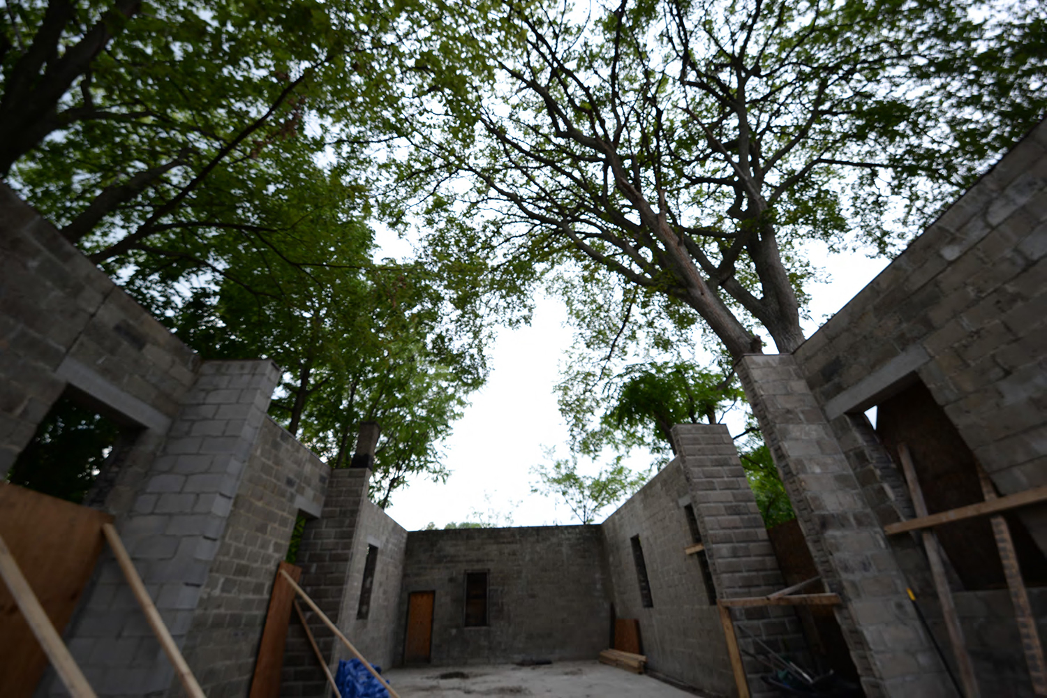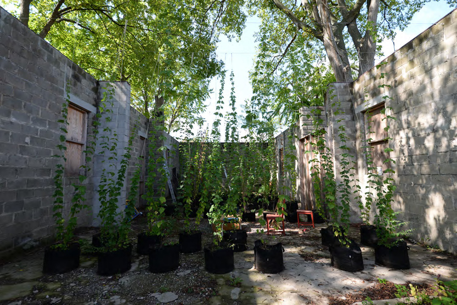 Hideout is the phased design and construction of a private workshop studio and secret forest in Detroit, Michigan. Hideout saves the walls of a more than century-old roof-less sawdust building. The structural re-working of the building reworks and solidifies the wall keeping its protective legacy, while permitting it to stand free and incorporate the surrounding trees. The next phase re-introduces live trees back into the building and positions a free-standing glass studio structure within a small portion of the internal space, allowing the rest to remain as an internal treed courtyard and respite.